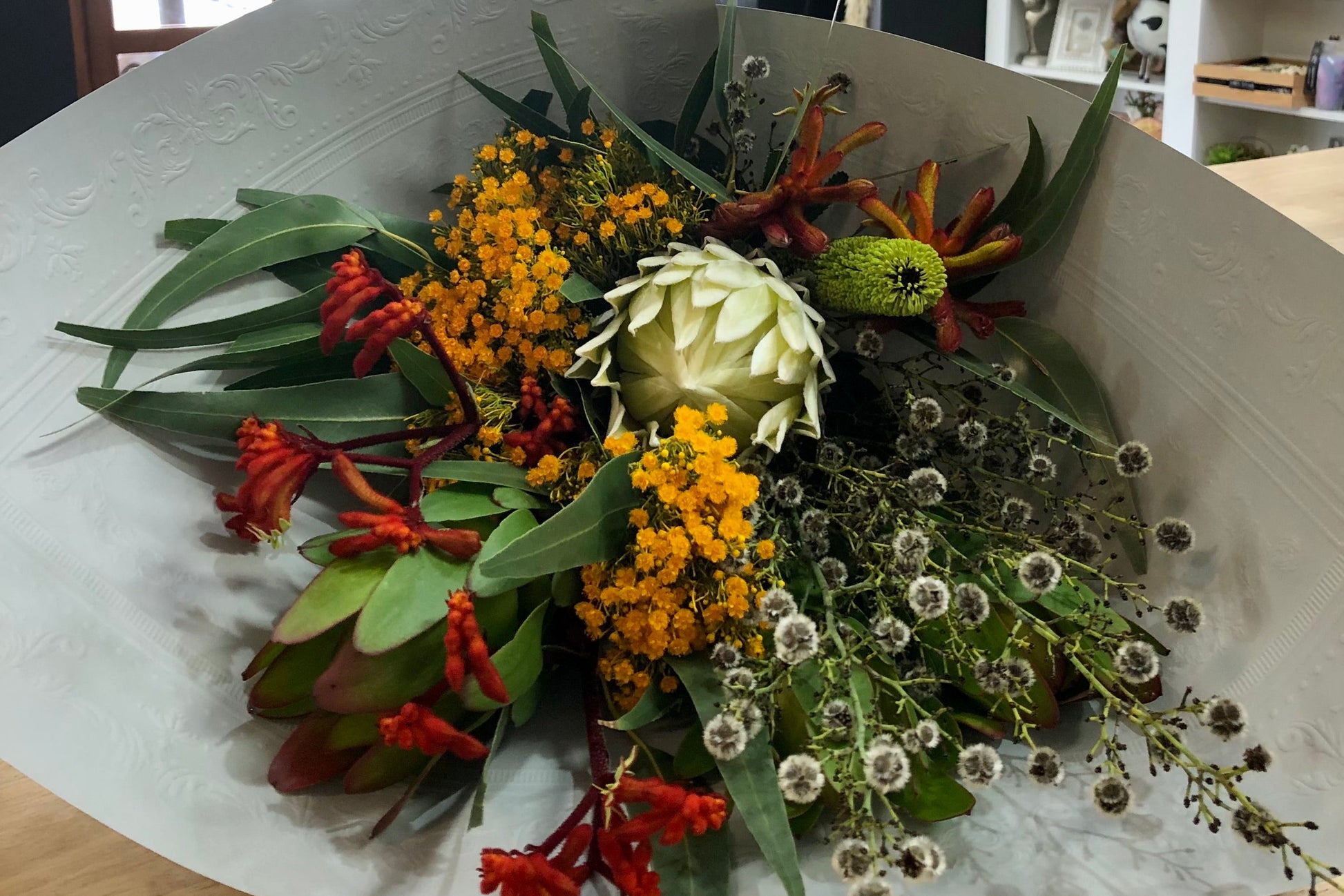With a selection of vibrant locally grown natives here in the Margaret River region, arranged as a bouquet. Option to purchase with vase.