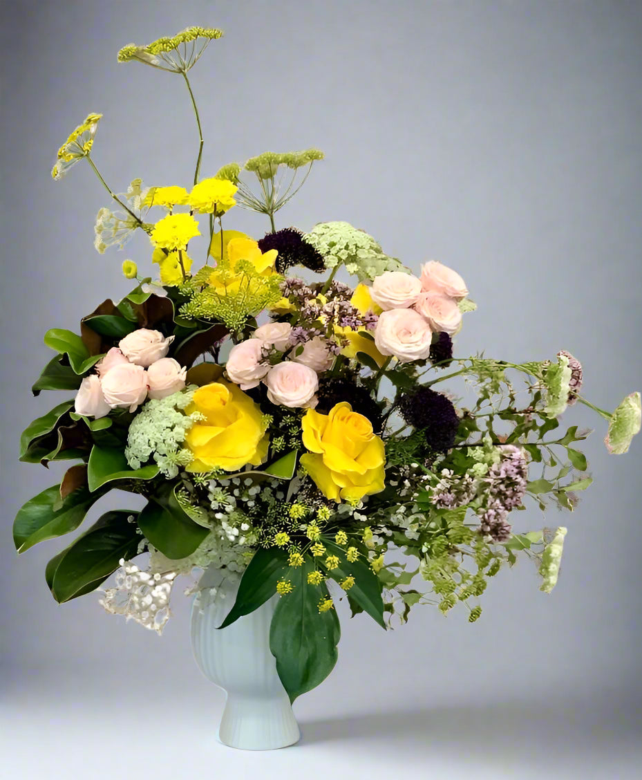 Flower types may vary in this arrangement due to availability, to be able to include roses in this arrangement we will require 3 business day's notice, otherwise it will be substituted with equivalent valued flower.